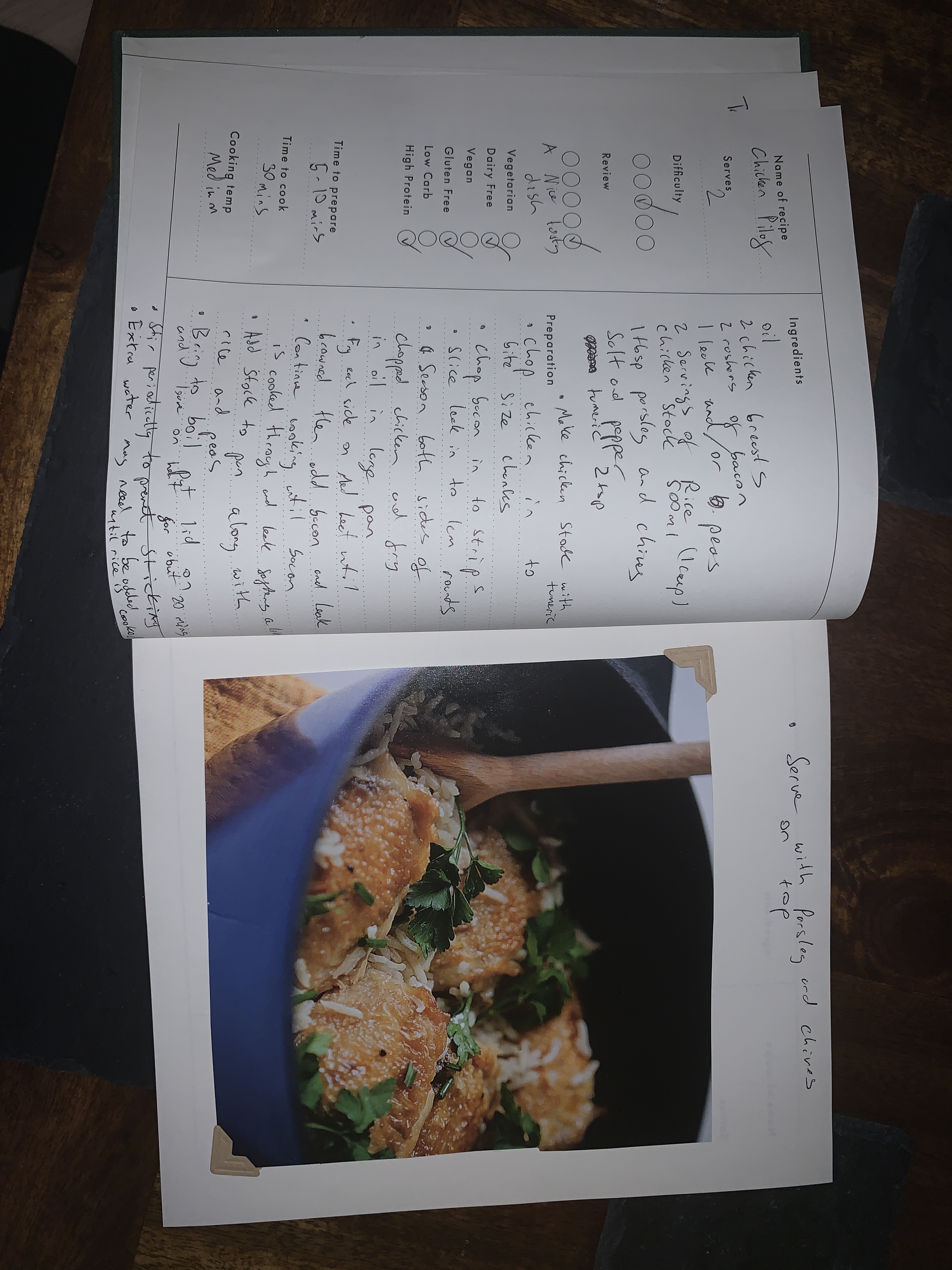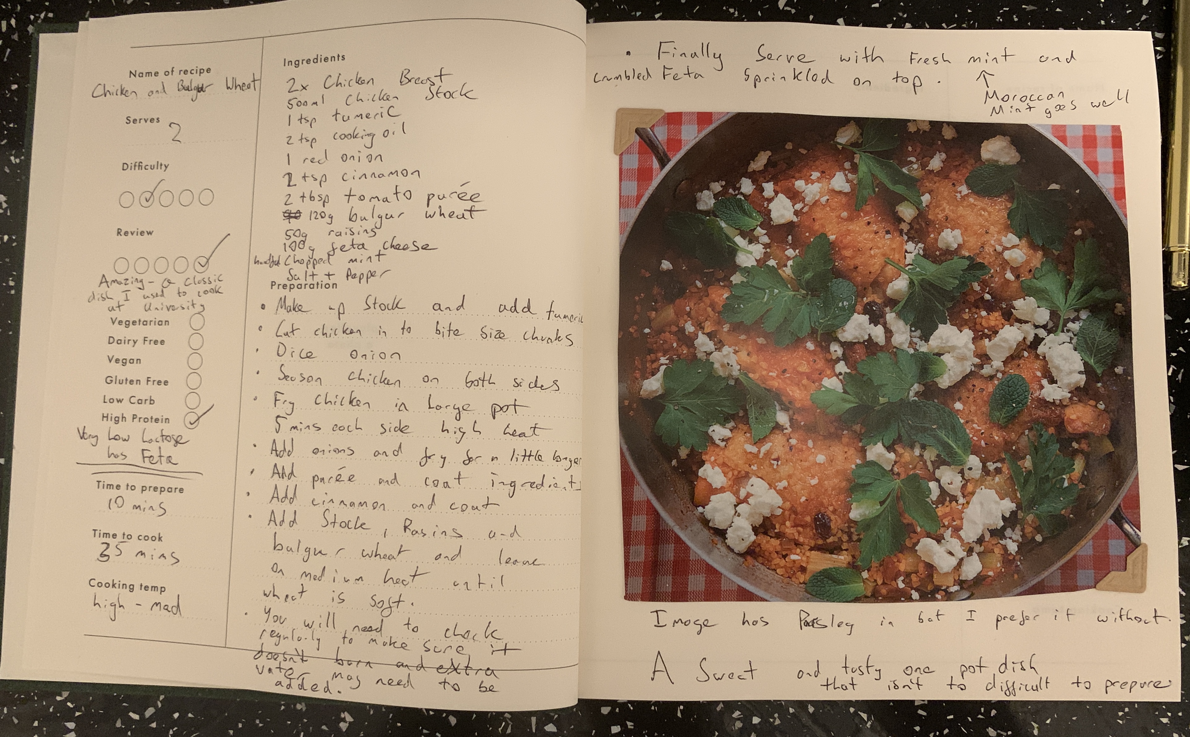 I had been meaning to make my own cookbook for a good while. I like the idea of compiling all my favorite recipes with the tweaks I have made all into one place. For Christmas (2024) my Mum got be an empty cookbook ready to be filled in, so now I have no excuse not to.